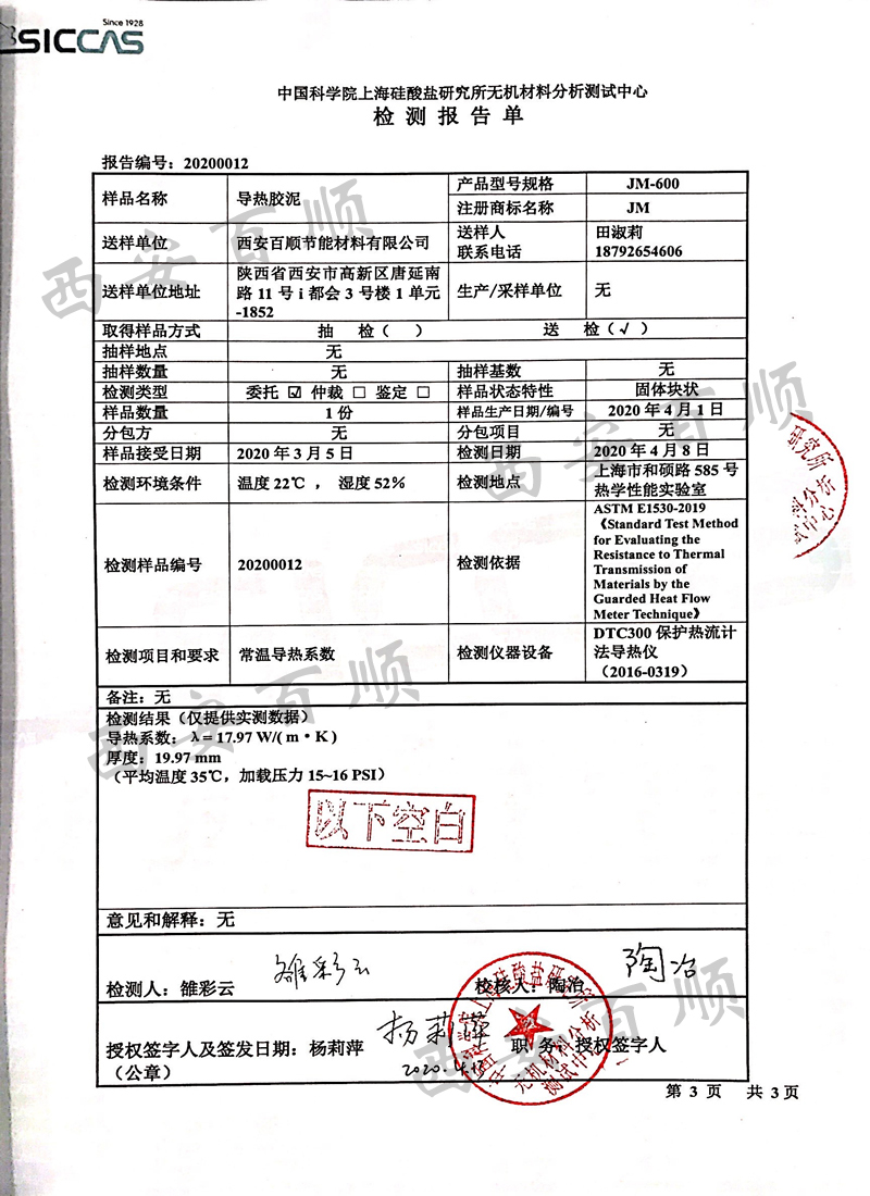 西安百順節(jié)能材料有限公司成立于1998年,二十五年來,我們專心、專注于導(dǎo)熱膠泥產(chǎn)品的研發(fā)、生產(chǎn);企業(yè)通過ISO9001:2015質(zhì)量管理體系認證,制定了Q/BS 001-2020《無機型導(dǎo)熱膠泥》企業(yè)標準,經(jīng)過不斷的研發(fā)、優(yōu)化,成功開發(fā)、生產(chǎn)、銷售了針對不同工藝、不同材質(zhì)、方便施工的JM-250、JM-600、JM-800、JM-1000系列導(dǎo)熱膠泥,年生產(chǎn)能力2000噸;